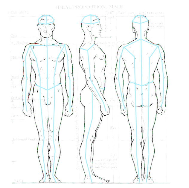 Меридианы тела: по передней и задней поверхности тела проходит серединный меридиан и два параллельных меридиана примерно в 5-7 см от серединного.